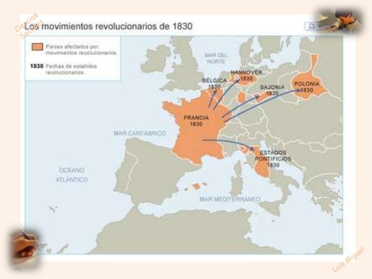 La revolución se inició en Francia y pronto se extendió por toda Europa. En Italia y Alemania estallaron insurrecciones con tinte nacionalista que, aunque fueron aplastadas, dejarían la semilla de la futura unidad. Las revoluciones de 1830 significaron un duro golpe para los regímenes absolutistas que sólo lograron mantenerse en Europa central y oriental.